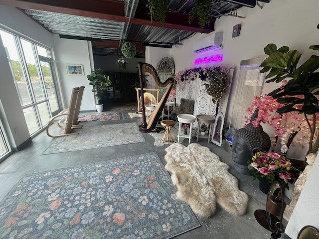 At the heart of it all, Jessica Foley, intuitive harpist and vibrational medicine practitioner, combines musical expertise with intuitive guidance and scientific understanding, to create transformative sound experiences that work on physical, emotional, and energetic levels. Her studios serve as intimate healing spaces with rare vibroacoustic elements imported from Germany, while her practice extends to the healing landscapes of the Sonoran desert and Maine coastline, where environmental rhythms amplify the harp's therapeutic resonance.